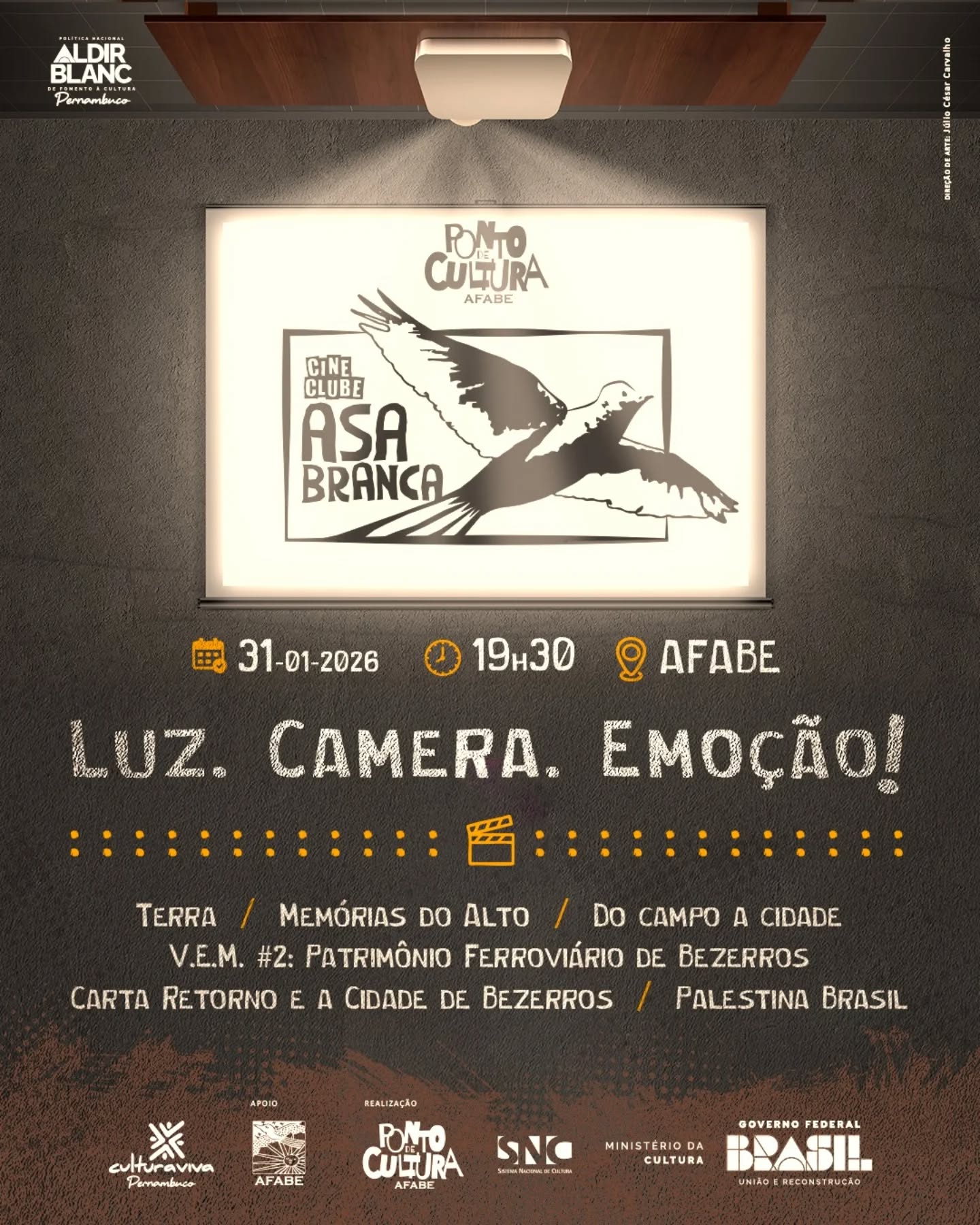 O Ponto de Cultura AFABE apresenta mais uma sessão cineclubista realizada pelo Cineclube Asa Branca.